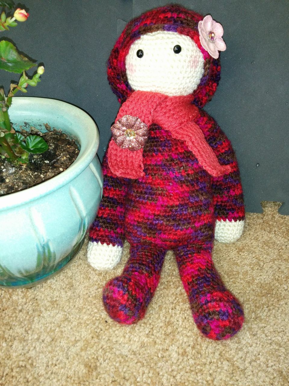 I based this off Lalylala’s creations, though I didn’t use the pattern. Ami’s are pretty easy to eyeball, but since I was obviously basing this on someone else’s work I felt obliged to pay for one of her patterns. (And they really are too cute for words.)