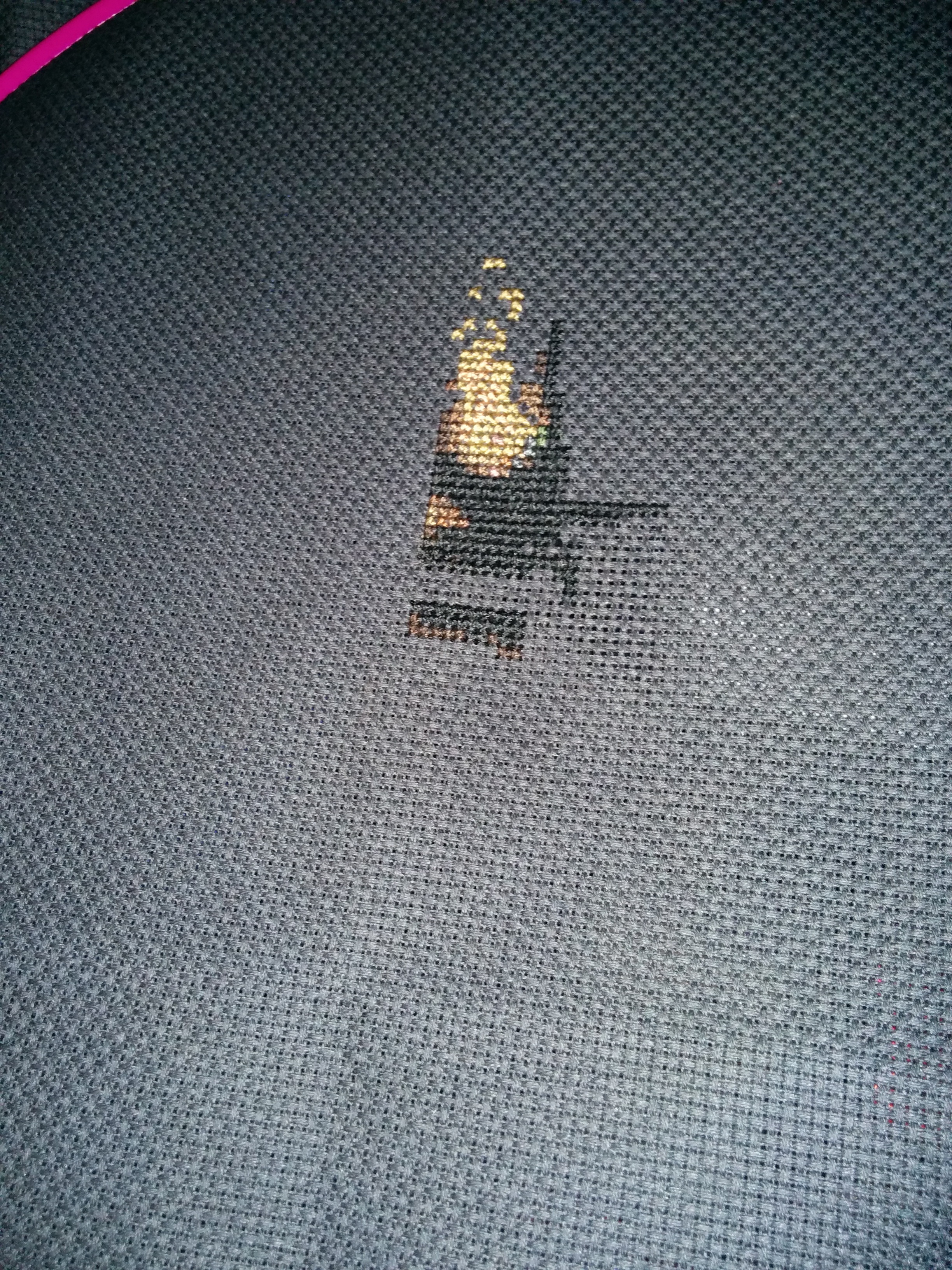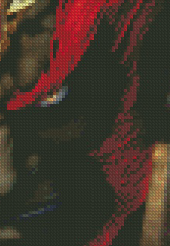 Now, I’m enjoying the heck out of Ganondorf, especially as he’s a playable character in some of the Zelda missions. And because he shoots lighting from his fingertips. What girl wouldn’t love a guy like that? So I decided to make a cross stitch pattern out of Ganondorf, part of which I have displayed here. (I don’t want to spoil the surprise by showing you the entire thing before I’m done…and this is just a mockup.)