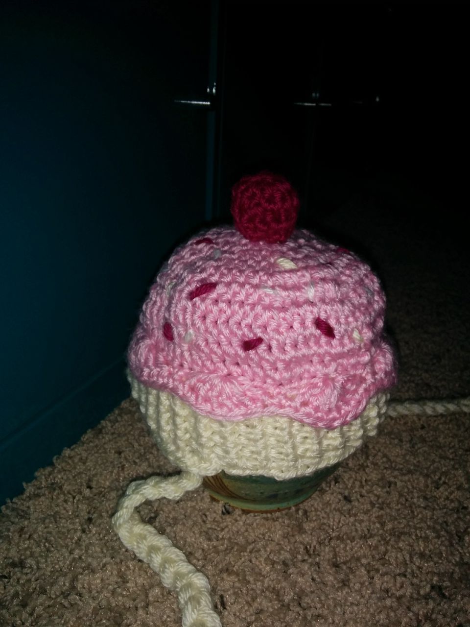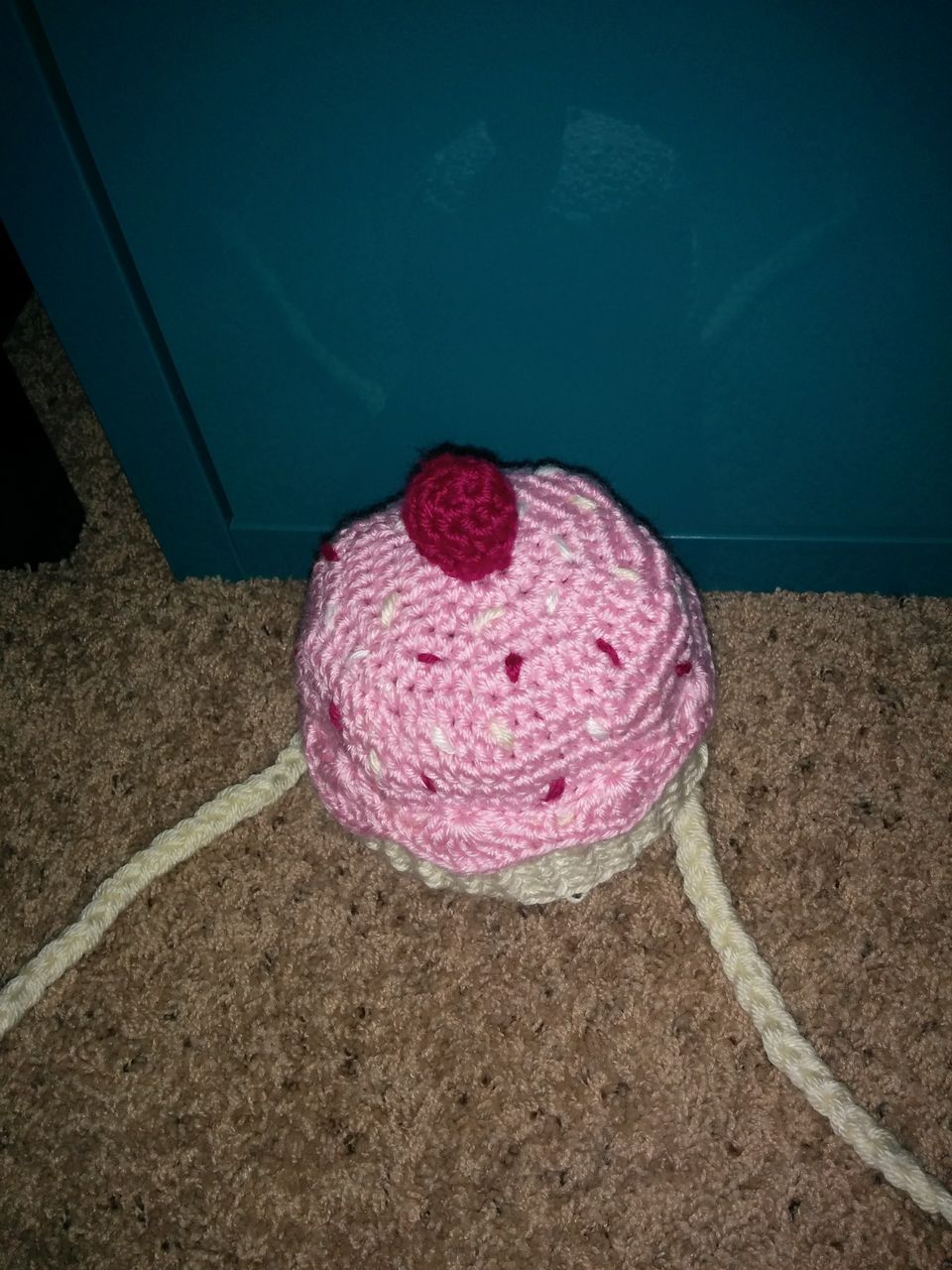So yes. Two hats this week: A child-sized cupcake hat made of the same yarn used for the puff-flower afghan (since it’s for the same kid-to-be), and a Lisa Frank-esque unicorn hat. Because everyone friggin needs a unicorn hat.
