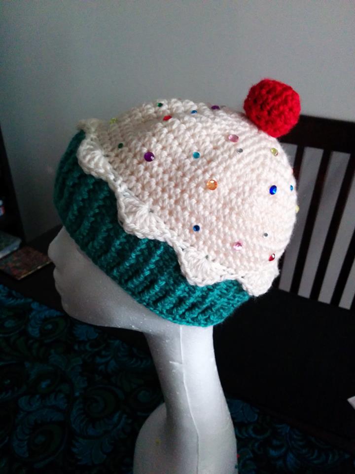 I like hats. They make for quick projects and are wonderfully customizable. I can make a hat in 2-4 hours of steady work (a little longer if it’s a quirky hat, like the cupcake ones below) and they make for good purse projects.